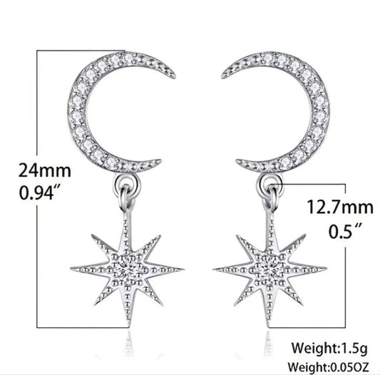 Simple stud drop earrings moon and star